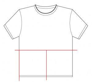 Each panel now needs to be the same width as the panel above it at its top edge, but wider at the bottom edge. You can cut these panels from what is left of the T-shirts, either using the bottoms or using the pieces of the top that you still have left.