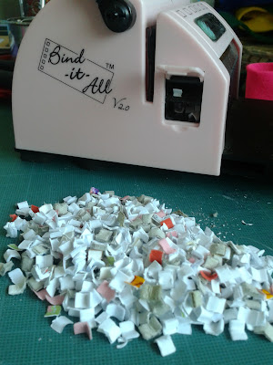 I carefully removed the card so as to leave the layout undisturbed, because I didn't want to attach the card until the adding the colour was complete.