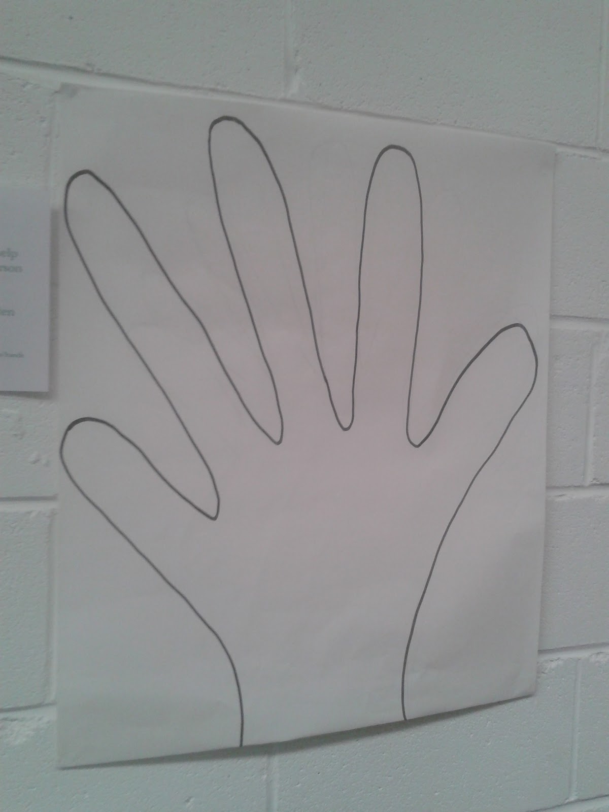 But if you can't get a laminated huge photo of a hand like that, you can always just draw one out like this, and use post it notes which can be removed, or draw a new one each time it gets full.