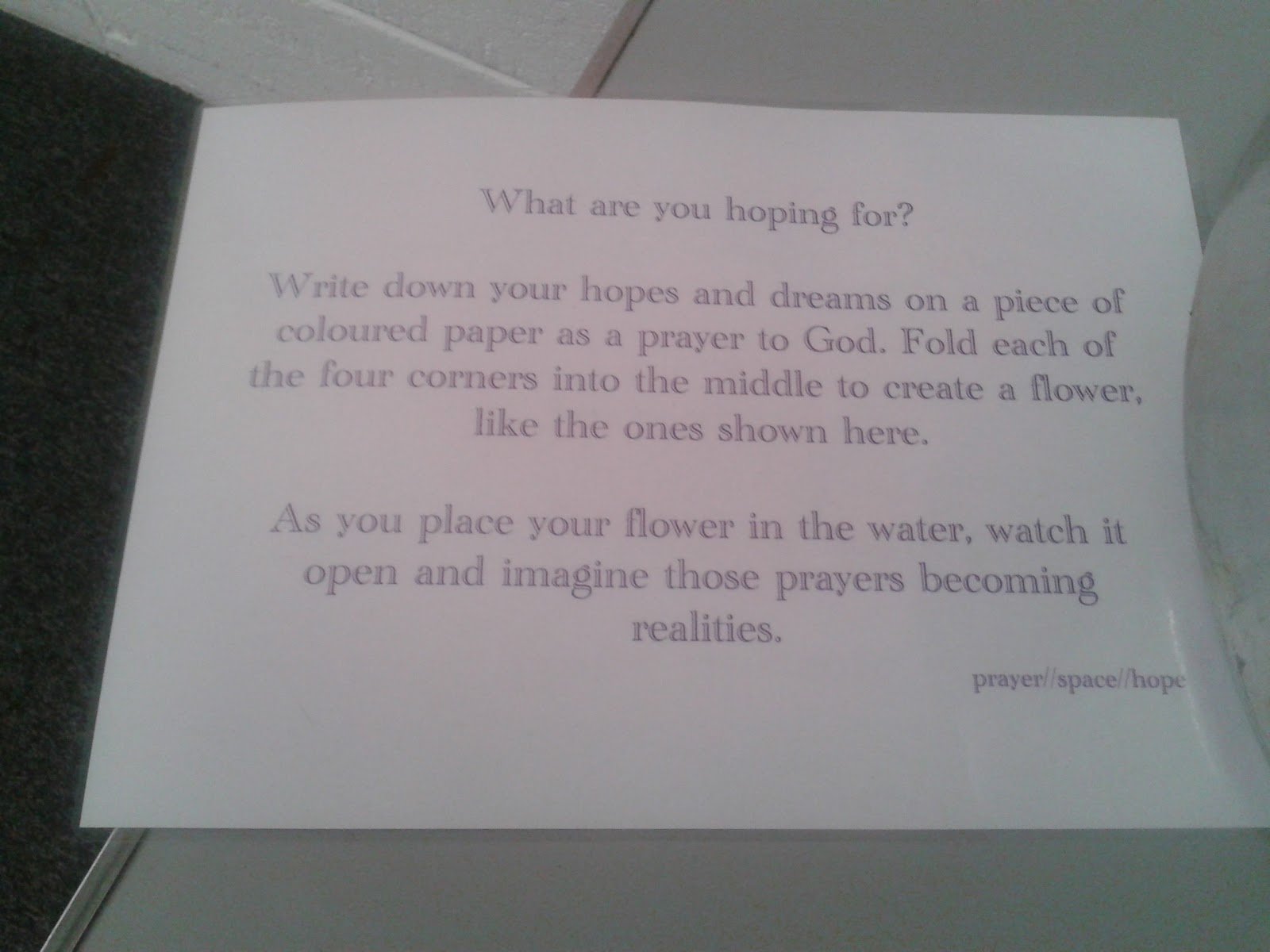 a) An introduction/explanation of the station itself - “This is a prayer wall. Prayer can take many forms...”