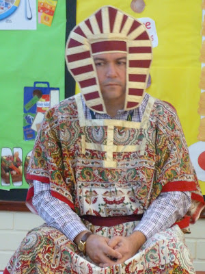 Most weeks involve us also using children and staff from the schools to play minor roles and these are often the most fun, such as the teaching assistant who played Eli in the story of Samuel hearing God in the night, snoring loudly and tossing and turning in his bed, with suitably grumpy behaviour when he was woken. He had us laughing as well as the children.