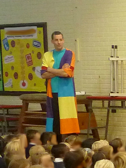 I first got involved in this when the headteacher of one of the schools I was already involved with approached me and asked me to put a team together. That was about two years ago. We began just over a year ago and are now in our second year, having added a second school at the start of this school year. I lead our team of 4 people, doing the planning and organising but we all take turns in the presenting role, narrating as well as taking turns at playing major or minor characters in the story.