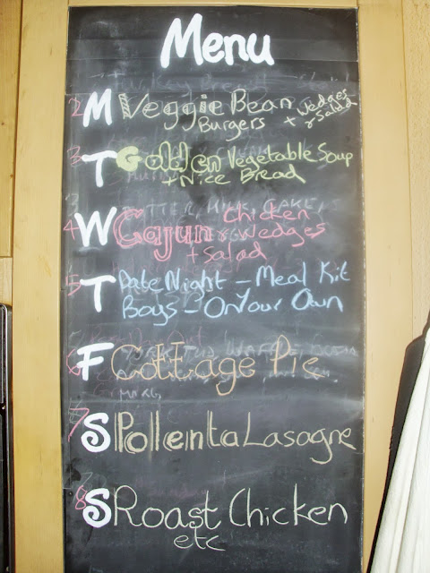 You can see there are certain days I try to cook certain things. Vegetarian twice a week, soup and sandwiches one day (which sometimes turns into vegetarian as well) and one day (at least) of fish. Although you can see from my chalkboard menu at the top that we don't have fish this week.